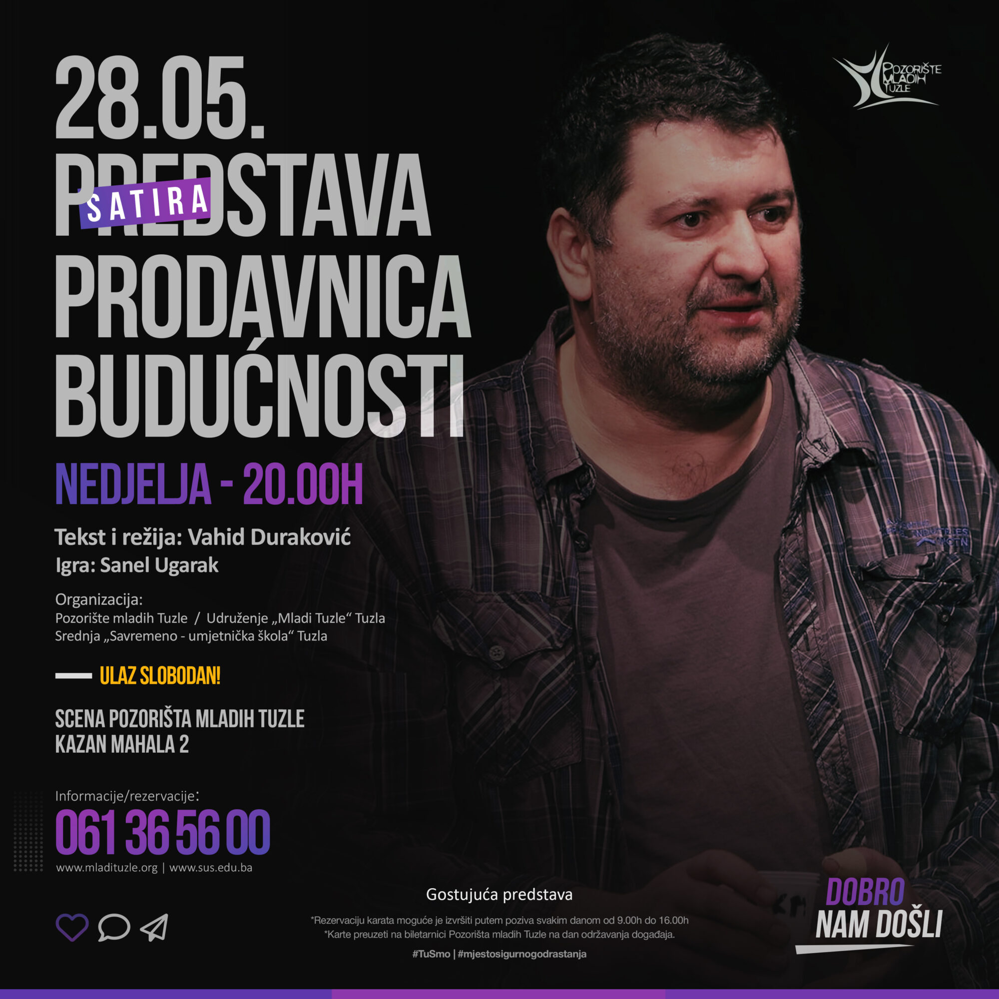 Predstava se realizuje na Sceni Pozorišta mladih Tuzle u nedjelju, 28.05.2023. godine. Monodrama – Prodavnica budućnosti U predstavi