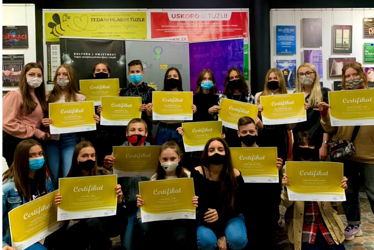 Nedavno smo grupi srednjeg uzrasta Dramskog studija za djecu, mlade i odrasle dodijelili Certifikate za završenu naprednu fazu. Polaznici su ovaj nivo edukacije završili radom na predstavi “Život u magli” pod rukovodstvom Maide Hamzić, Belme Huseinefendić i Aide Dedić.