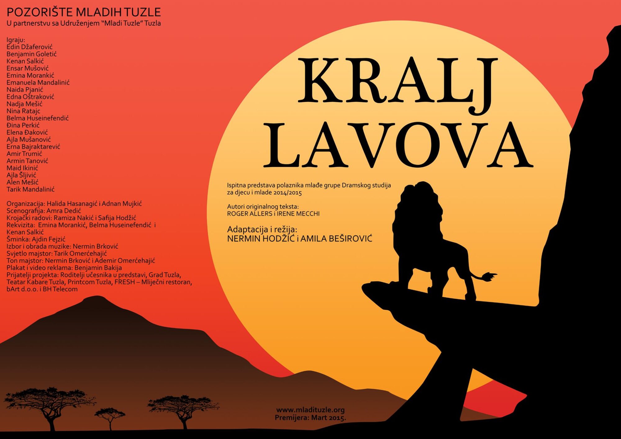 Predstava ‘Kralj lavova’ je rezultat rada napredne faze mlađe grupe Dramskog studija za djecu i mlade 2014. godine, nastala na osnovu animiranog filma ”Kralj lavova”.