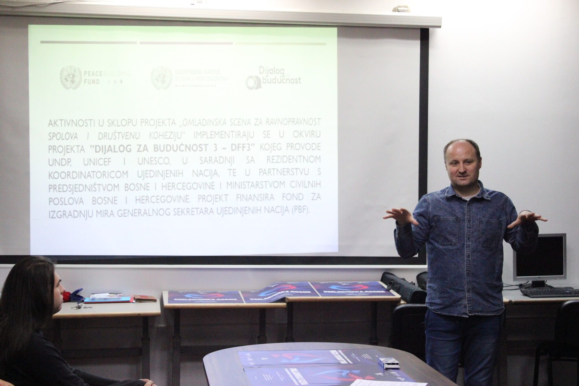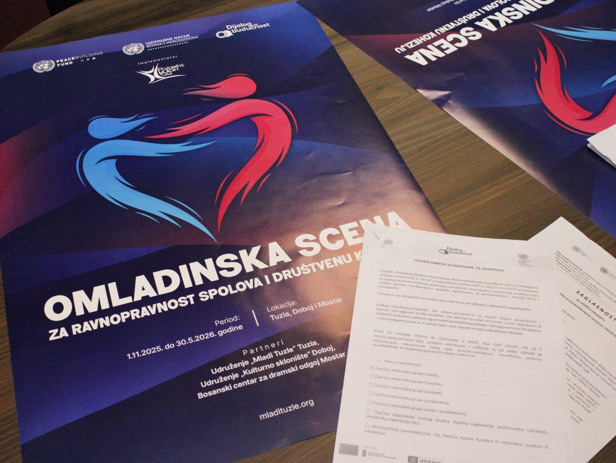 Aktivnosti u sklopu projekta „Omladinska scena za ravnopravnost spolova i društvenu koheziju“ implementiraju se u okviru projekta Dijalog za budućnost 3 – DFF3, kojeg provode UNDP, UNICEF i UNESCO, u saradnji sa Rezidentnom koordinatoricom Ujedinjenih nacija, te u partnerstvu s Predsjedništvom Bosne i Hercegovine i Ministarstvom civilnih poslova Bosne i Hercegovine.